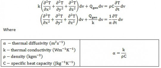 k - Thermal conductivity (Wm-1s-1)